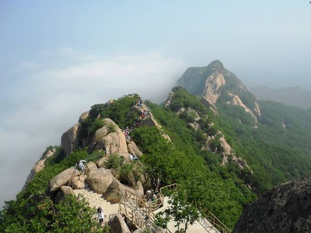 己亥春日偕李葆国、董澍、郎晓梅、邢涛涛诸兄登凤凰山春日访凤城,因过凤凰山。主人颇自豪,一路多大言。谓兼五岳美,黄山不足观。同伴俱呵呵,余心亦哂然。远眺非陡峻,近看也一般。乘坐观光车,宛转入山间。春归山还瘦,天晴气犹寒。白石何盘礴,万木萧且闲。过了杜鹃坡,车停不复前。坦途供漫步,且行且高谈。笑立黑风口,才堪动衣衫。有松可留影,有桥可通仙。有朋可论诗,于焉且盘桓。清游渐到山背后,忽见峭壁千寻迤逦出氛垢。仿佛巨灵斧劈成,鸟不能立况猿狖。竟有栈道横其间,除非神龙变幻更谁能筑就!请看弥天长云若鳞甲,不分昼夜勤护佑。嗟余平日夸斗胆,对此亦觉太惊险。低头不敢朝下望,深沟大雾正翻卷。抬足一试颇坚牢,渐把恐惧掷九霄。城乡山川在眼底,凭栏送目意气豪。感此登临多胜概,始信名山不在高。一步一换形,十步且暂停。千崖不同态,一样爱峥嵘。莫恨叶落山突兀,恰宜此际观山骨。或似雄狮守落照,或似猛虎瞰深谷。或似浮雕百丈宽,浑然不辨是何物。枯枝缭乱如大草,恍闻颠张狂素握发题壁声簌簌。走过栈道已无憾,此游端可了吾愿。五岳登否真琐琐,不妨归取画图看。