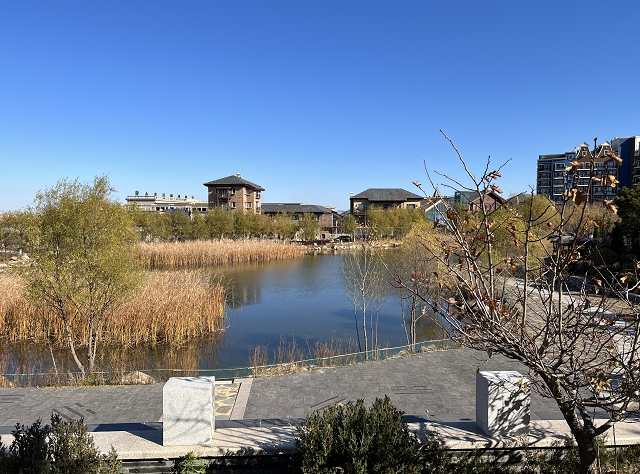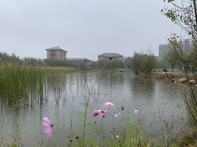 柳在溪头舟在岸,秋深犹绽野花苞。