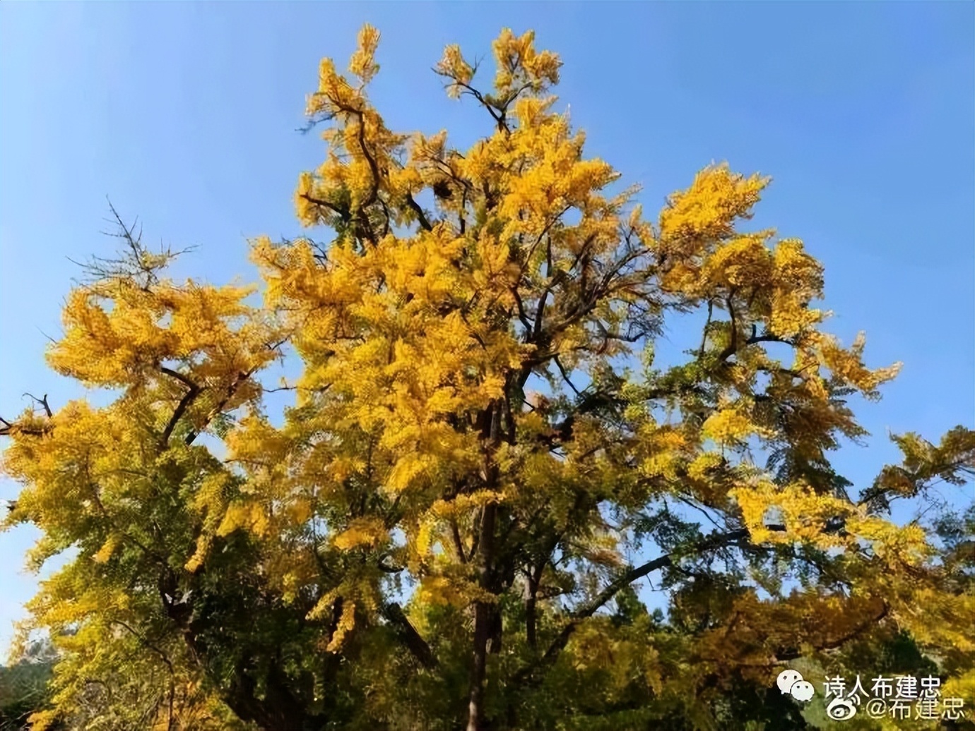 注1:近日,市民游客慕名来到济南五峰山景区,观赏一株“身披金甲”的千年银杏树。时值初冬,五峰山景区一株千年银杏树金黄耀眼,迎来最佳观赏期。挂满金黄树叶的树枝,错落有致,枝枝相扣,形成一把巨大的“伞”。据介绍,此株银杏树树龄已有2000多年,六七个人才能合围,是济南市最古老的银杏树,而且是自然界十分罕见的雌雄同株,享有济南境内“银杏之王”的崇高地位。