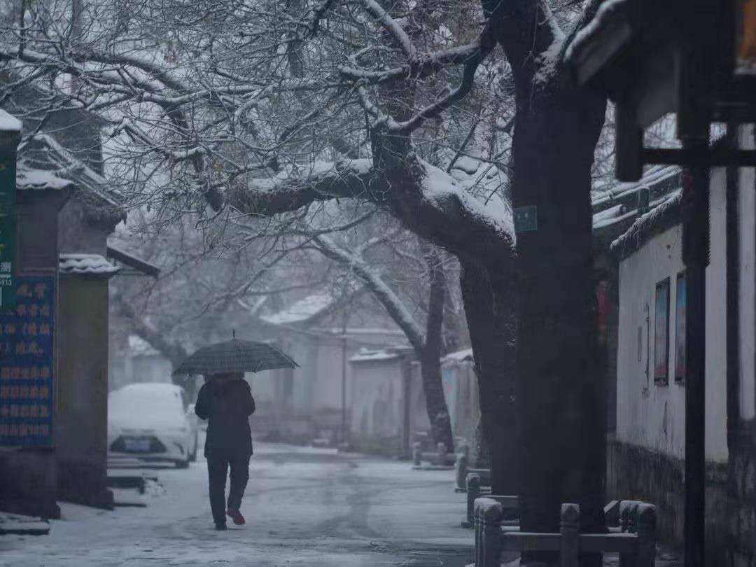 走出“聊斋”小院,外面的街巷也好看,村落屋舍都加了雪花滤镜,唯美而古雅,三株古槐在风雪中沧桑而遒劲,不动声色,却告诉人们:“我很老很老哦,我什么都知道!”间或有几声犬吠或鹅叫,它们与整个村庄一起,分明就是梦里老家的模样,这是优秀历史文化和民风民俗交融相生形成的地域审美,只要用心发现,就在我们身边。