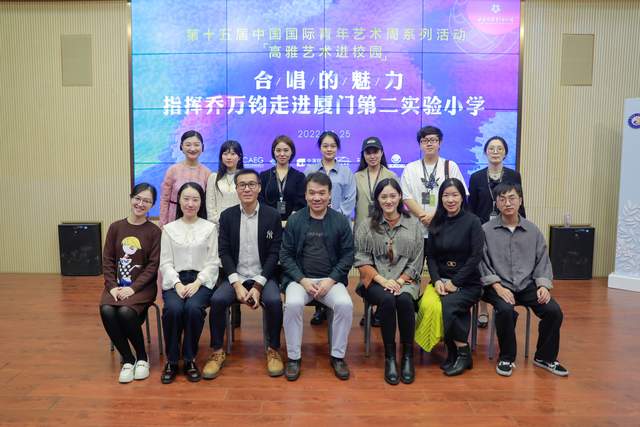 合唱是最富有表现力的一种音乐形式,本次活动指挥乔万钧挑选了《大海啊,故乡》这首曲目展开教学,他说:“站在厦门的土地上,他感到无比亲切,在这座美丽的海滨城市唱起这首歌,更能体会作品中所饱含的爱。”旅美期间,乔万钧先生曾经组织并指挥过上百场以《大海啊,故乡》为主题的音乐会,每每唱响都会牵动他对祖国的情与思乡的意。这首中国作品能在海外传唱并由国际顶尖的乐团与歌者来演绎,也展示出了中华人民的文化自信。此次在厦门,在指挥乔万钧的引导下,闽南大戏院梦想童声合唱团与厦门第二实验小学的学生汇集在一起,形成了美妙的合声。充满着童真与温暖的演绎,也感动了在场的每一位师生。