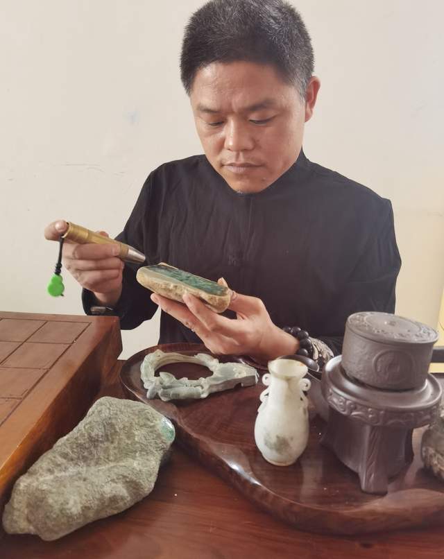 2010年,高发超在腾冲观音堂翡翠古镇租赁了一套房子,购进7台雕刻机,招收了几名学徒,建起了加工作坊,形成了前门开店、后门办坊的业态,生意做得风生水起,收入不菲。