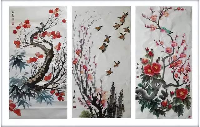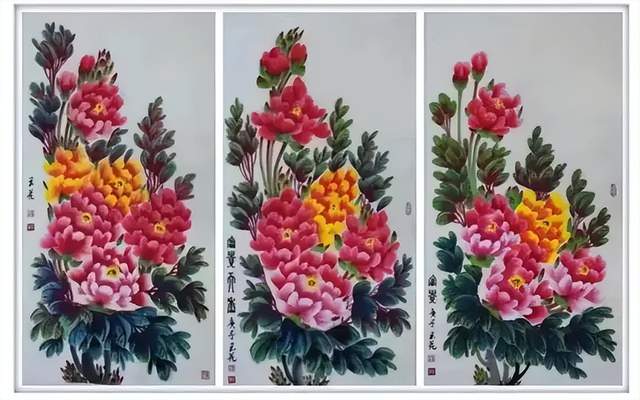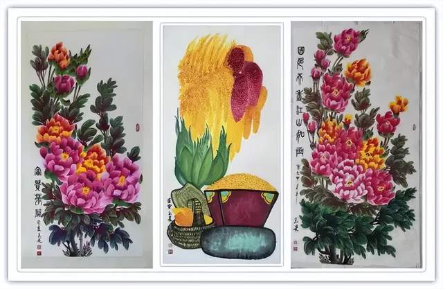 作品风格:工笔、写意、山水、泼墨泼彩山水、花鸟、人物古代仕女、书法创作;年画系列、油画系列、自画像古装系列、山水花鸟画系列、牡丹画系列、诗书画系列、扇面画系列、中国绣品画系列、中国瓷器画系列、书画长卷系列、丈二以上代表作系列。
