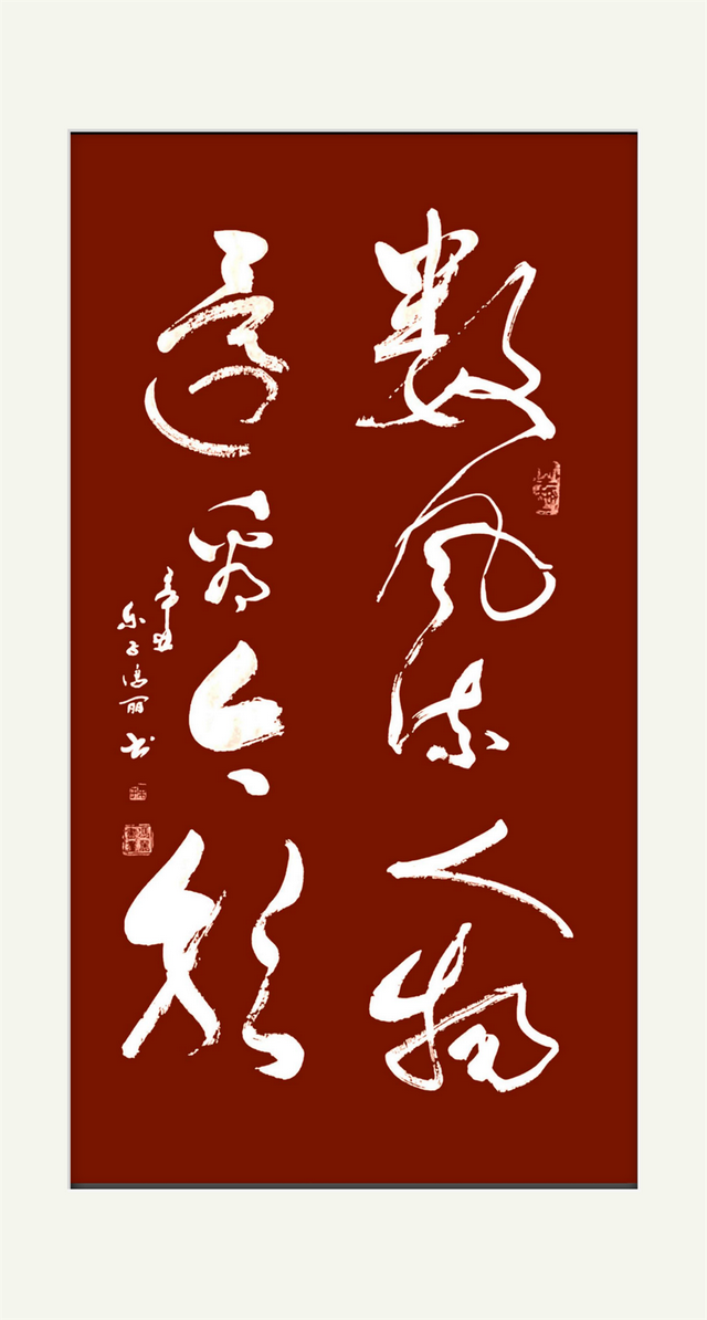 冯丽出生于一个书香世家,三岁随父亲修习书法,曾临习柳公权、颜真卿、王羲之、怀素,赵孟頫,王铎等帖。1965年进入长沙幼师附小读书,受到老师书法严格训练,1966年时逢文化大革命,懵懂的他受命于老师写大字报,书法就入学校师生眼帘,小小年纪写出如此规范的楷书?原来他三岁开始受教于父亲言传身教,习柳公权《玄秘塔碑》,其父教导:“用笔在心,心正则笔正”,后吸柳公权、王羲之、怀素大家之大成,大学毕业分配大型企业宣传部门,每逢过年过节,大门匾联,大地一摊,排笔、斗笔横平竖直,笔势舒展,一片平和润雅之像。