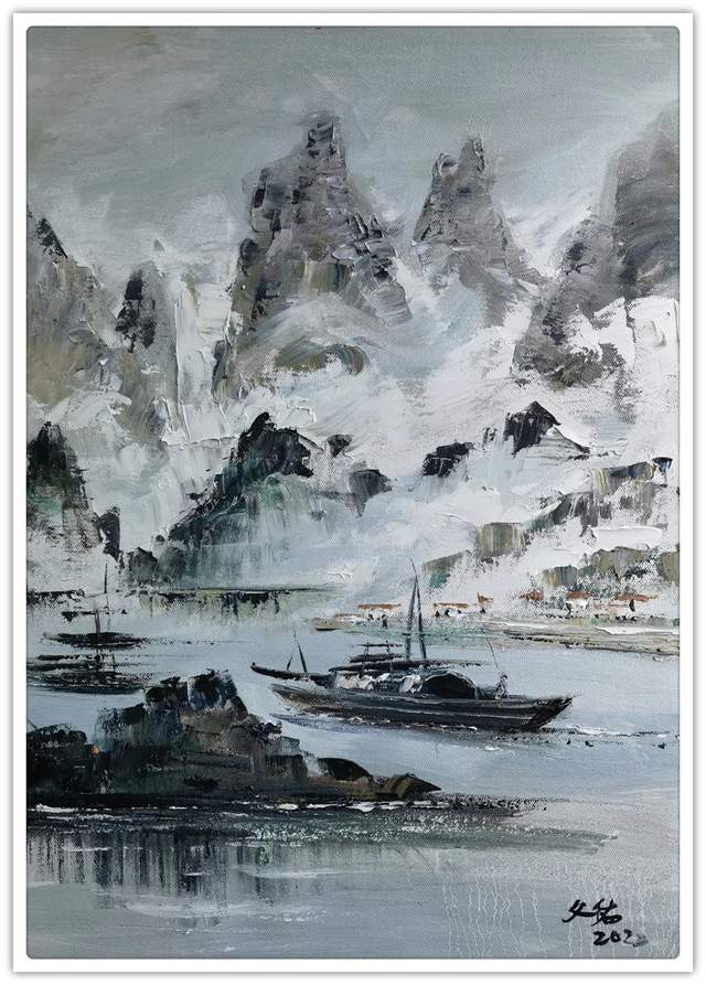 以上《漓江渔家》60×80厘米,2022