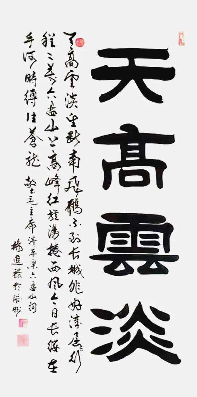 杨进禄深谙书画同源之道,书画互发,顾盼生姿,映带有情,相得益彰。其画中节奏与韵味,莫不得书法之涵养。山河绘于笔下,诗情蕴于胸怀,在浓重的墨韵中展现恢弘的胸襟,在古法的用笔中寻找一种美的画面。