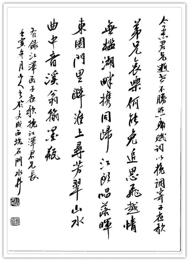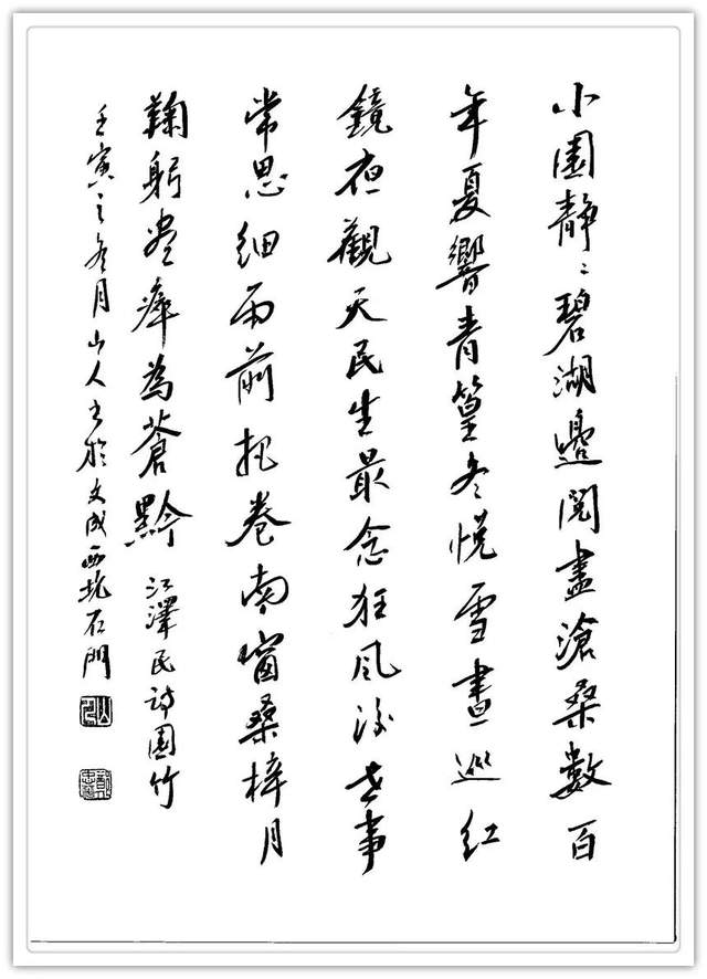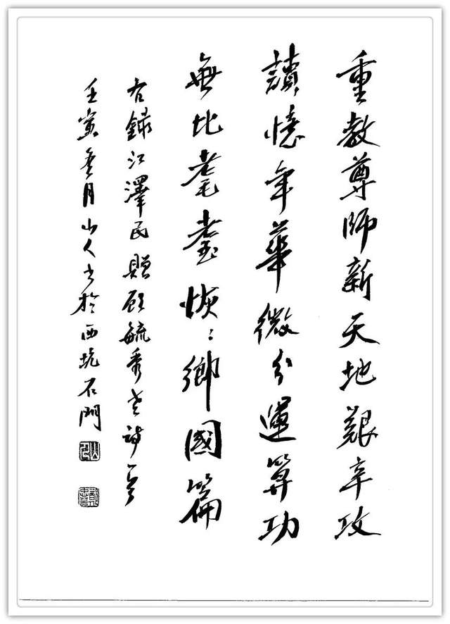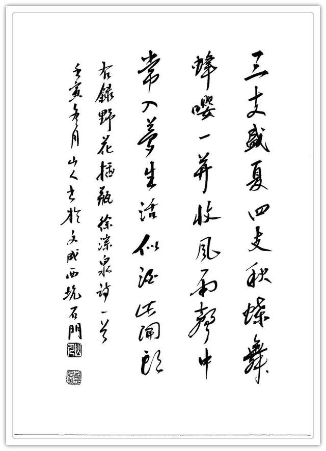 书写性,是创作书法艺术作品的一个重要表现所在,和文人性的内蕴感不同,书写性所带来的视觉表现,是能够首先抓住观赏者的视觉感受,继而才会让人为之深入体验书法家所于作品中赋予的文人内涵。但在当下书坛内,以书写性为外在表现的书法作品却是已经到了严重缺失的地步,究其原因,一方面是因为执笔者趋名附利所形成的展览式创作,另一方面,则是因为书法家没有个性化书风的随众照抄,甚至是千篇一律,而这种书坛的创作环境,显然是有对书法文化的一脉传承带来了极大的泯灭冲击。然即便如此,在当下书坛内仍是有一小部分书家还在坚持于对书法文脉的正道追求,像郑忠华先生便就是其中的一位佼佼者!他作书法,是从不求随众而为,而是一直尤以传统法度为根基,执笔尚行,立意本真,翰墨文化的精神内核,在他的手中已然是有形成了极高的艺术水准和寄情深度!