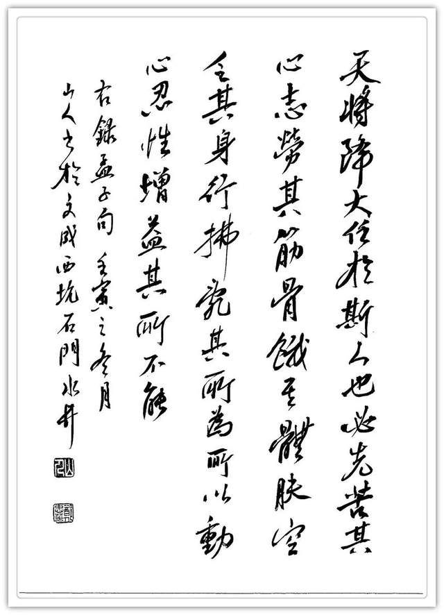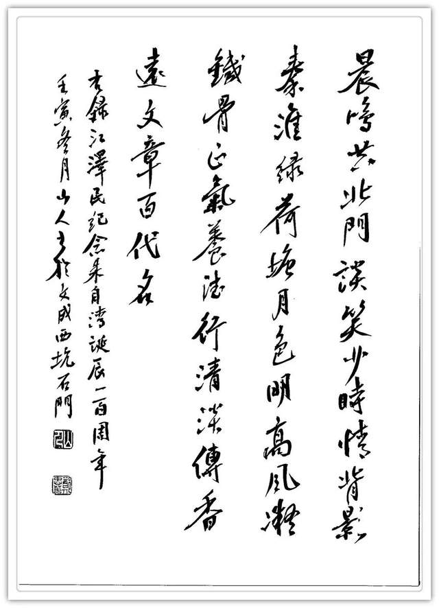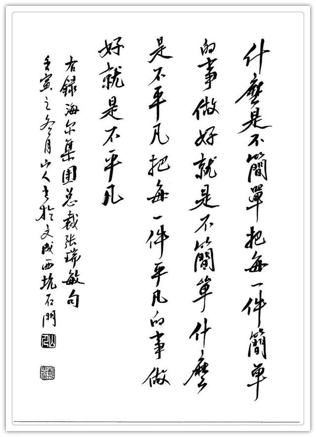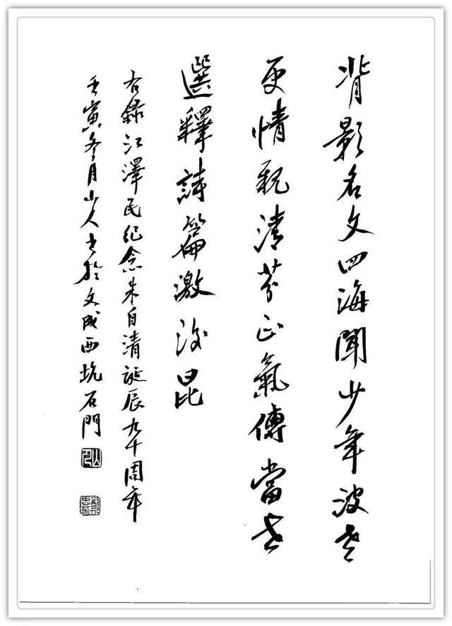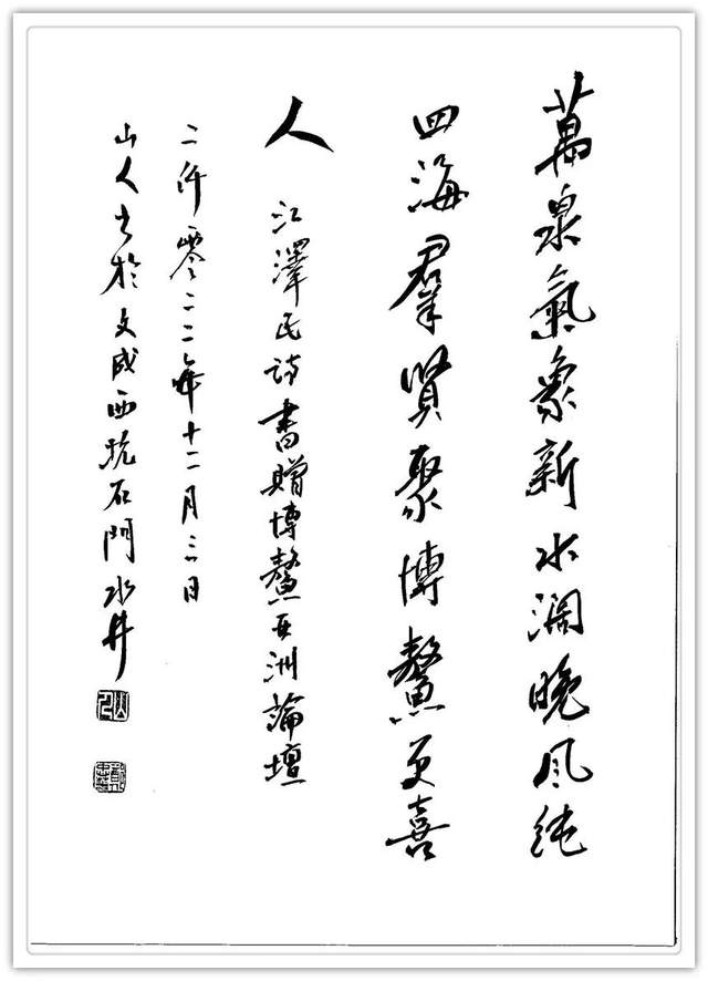 从艺术的角度上来说,书法艺术的风范形成是有着两方面的相济原因,一方面是来自于前面所说的技法层面,而另一方面,则就是来源于书法家本身所拥有的文人修养和文化底蕴,正如清代名家王妤所言,是曰:“立品之人,笔墨外自有一种正大光明之概。”此于今日郑忠华先生的众幅书法作品中,亦是有所相应体现!蕴厚德而立书风,修雅境而行书意,而其作品中的笔墨外化构建,显然也已是有成为了他本人抒情达意的一种文化载体!蒙养正气,直抒胸臆,德艺双馨,自是不凡!