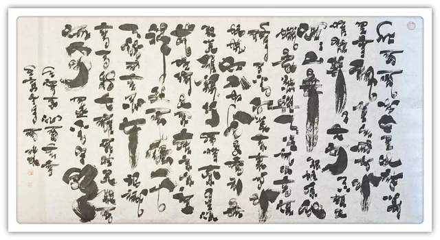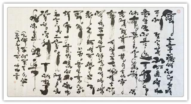在书法创作上,周成林先生显然是有着十分出众的拟态格局,字字书体既有帖法之流畅,同时也是丝毫不失于碑法之浑穆,尤其是在笔法的表现上,这种刚柔相济的兼容感更是极为明显!用笔之道,时而粗厚于率意,时而藏锋于凝重,笔迹所到之处,是有长短之变,亦具粗细之分,所书字体,更是有极具于一种趋扁意态,是谓朴茂卓然,不失一格!而在观赏过后,你也是会不得不承认周成林先生那深厚的翰墨功底和创作章法造势,立古之本而化为己用,尚新之法而承续雅正,气象赋千钧,笔迹传律动,翰墨艺术的时代真谛,由此即是一目了然!