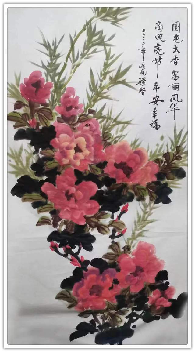 岭南派画家梁坚,一九三八年生,广东新兴人。一九五七年毕业于广州教师进修学院美术专业,师承赵崇正、李云、黄笃维、潘鹤等,能画水彩,会做雕塑,擅长中国画。一九八零年加入广东美术家协会。二零零四年加入中国国画家协会。现为江门市政协书画院画家。曾获广东省南粤优秀教师特等奖,是广东特级美术教师,新会市名教师。作品刊入《20世纪掇英大画册》、《全国教师优秀作品集》、《东方书画长城巨卷》、《中国写作品选集》《中国美术选集》、《中国美术家》 ,《美术大观》被新加坡李光前博物馆收藏,先后于新会,广州、新加坡、台湾举办个人画展。出版有《梁坚画刊》、《梁坚中国画集》、《梁坚作品集》,《梁坚花鸟画明信片集》。一九九六年创办梁坚画苑,教授学生,培育人才:并坚持深入生活,努力创作。以高尚的师德风范和精湛的教法培育学生。作品形式多样,既有气势磅礴的长卷巨构。又有潇酒灵动的小品。作品取材广泛,构思新颖,生活气息浓郁,用笔稳健沉实而又洒脱流畅,用墨干湿变化,虚实相生,色彩富丽高雅,格调清新。极具岭南画派之特色及时代精神。