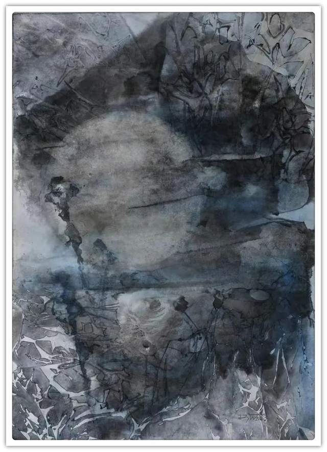 意识流相:首先,能形成意识的是通过(心经)所言的眼,耳,鼻,舌,身,意。的眼对物像的觉察,行察获得认知储存于意识之中。久之的积累就形成了储藏—-潜意识。在静观物像时会输出于此同构的物像识别。痕印:是通过软,硬介质在水墨作用下留下的印记。意识流相:就是通过视觉静观痕印而引出的同构物像识别。水,墨画面的构成中,痕印与水暈形成意境。通过画材介构意识形态。解构痕印。呈现出一个新世界。也就是(心经)所述的色,受,想,行,识。的结果。这就是意识流相。汪涤洋写于2022年12月1日