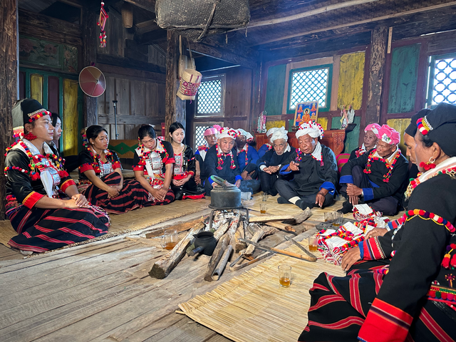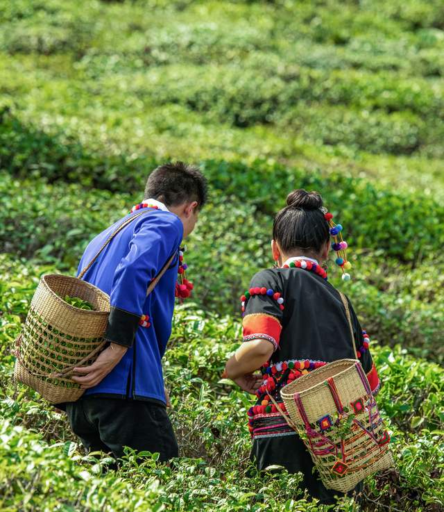 临近中午,茶园里的不少群众,惦记着村里一户人家结婚,大家要去帮忙和吃酒席,于是,茶园里的乡亲们陆续回家。换上鲜艳的民族服饰,三三两两地汇入有200年历史的老寨的小巷里。