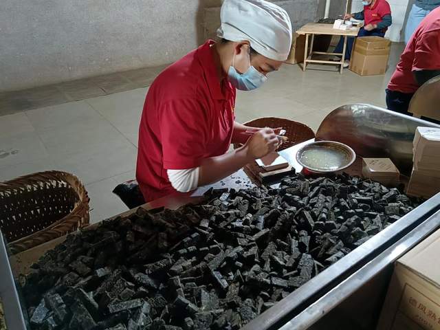 企业把“堆放发酵”确定为关键控制点,将发酵9个月的酸茶,从酵池里取出;再把竹筐打开,取出酸茶,在太阳光照下晒干、风选、拣剔,作为原料备用。经机器或人工加工成不同形状的产品,如条茶、圆茶、片茶、散茶等,自然干燥即可,实现了现代企业销售德昂酸茶的新渠道。(文图/张密 韦福娟 岳冰莹 视频/代丽)