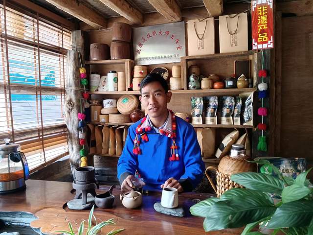 38岁的赵腊退是德昂族酸茶传承人中的年轻一辈,如今酸茶已经成为他们家增加收入的来源之一。