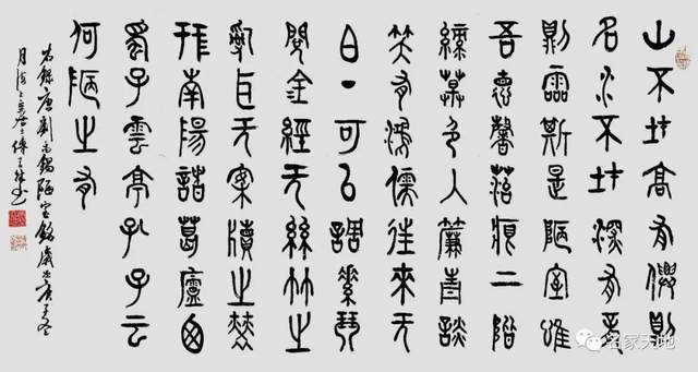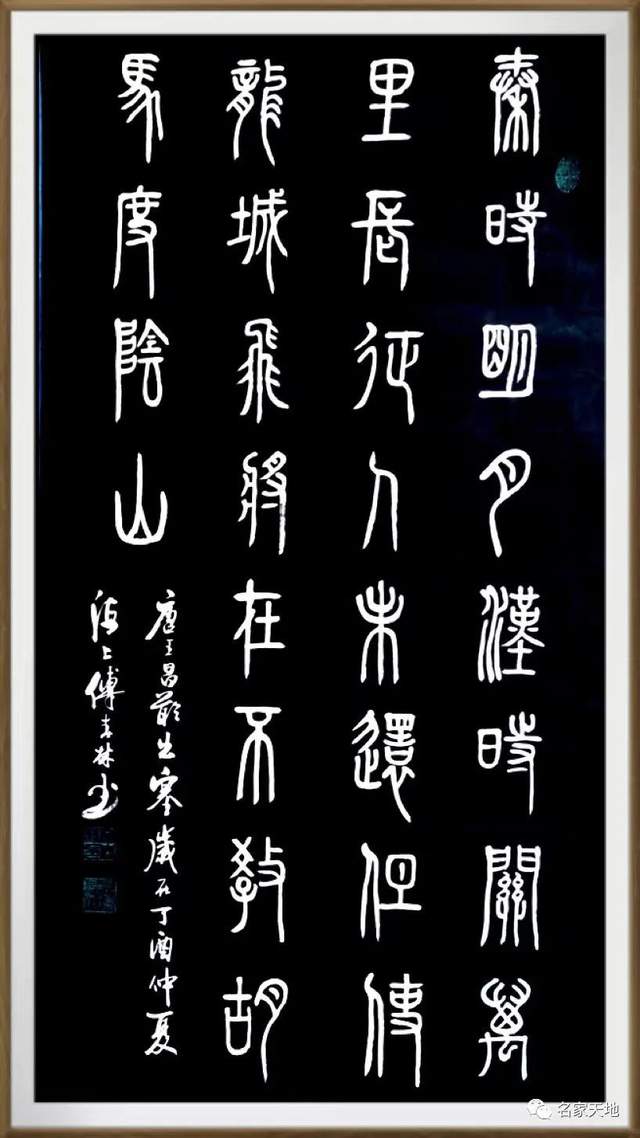 《黄帝内经》曰:“阴阳者,天地之道也。万物之纲纪.变化之父母,生杀之本始,神明之府也。”从甲骨文的朴茂生动,写到秦风铁丝篆的叩击山河,再取汉碑十碑之功,历练二王法帖,一路行走,终见翰墨盛世芳华,令每一件作品都泊满远袭于晋韵宋意的文化品位,写得成文人书法的翩翩洒脱,作得出东方文化的刚柔相济,可以在一划之间变起伏于锋杪,也能够在一点之内殊衄挫于毫芒。
