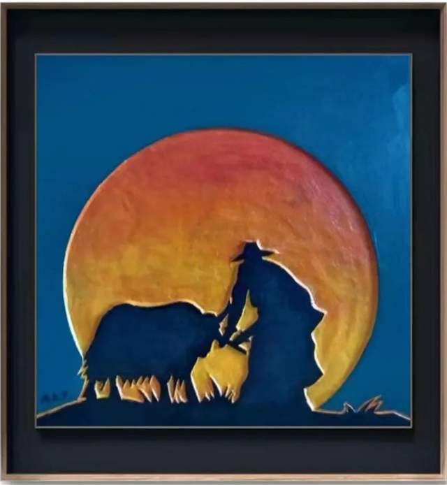 以牧人生活的瞬间为基础,实现民族传统绘画与雕刻色彩相结合的视觉融为一体,激发出生命深处的原动力,是艺术创作者对生活生命的原始礼赞。