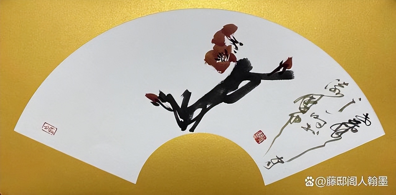 王福才中国画《扇面·红梅》