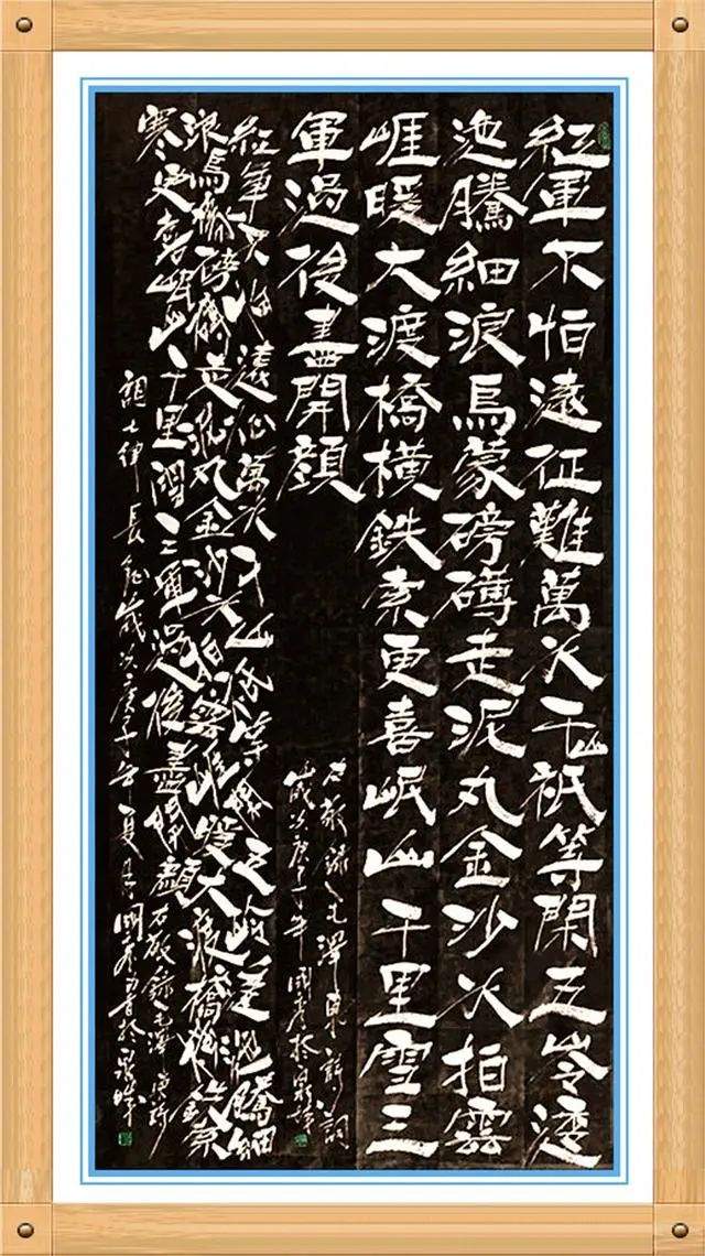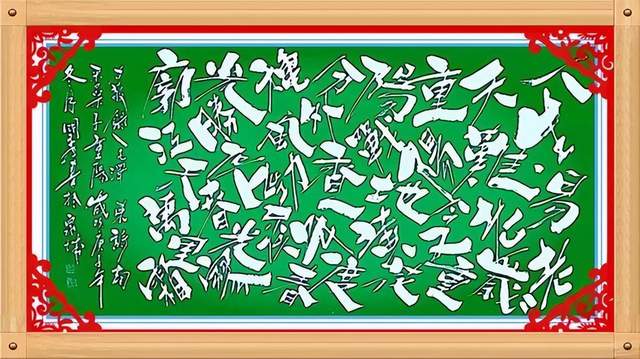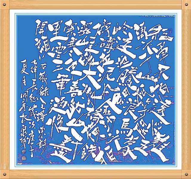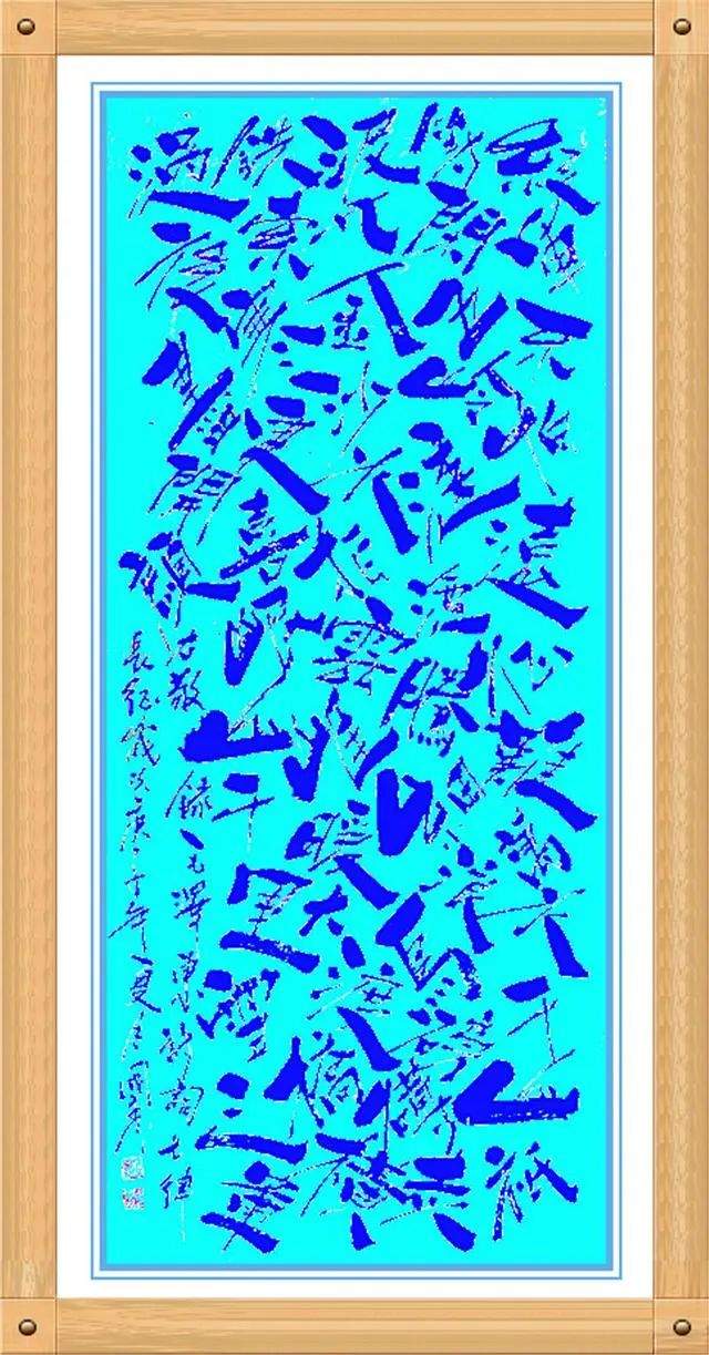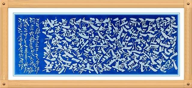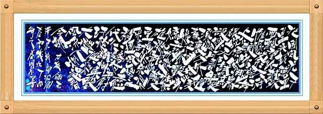 更可贵的是,姚国秀先生的书法在深师传统碑帖的背景下,又有形式形态上的卓越创新,他把书法从线条艺术推向了空间制美的神奇,打破了章法形列的构造陈迹,让每一个字在空间内各成妙趣,奇正穿插,不笔划粗细变化,点线面的配合,以白计墨,以墨写白,构造出空间神幻乱石垒墙的书法新意象,成为书法文化的新品牌。一幅毛泽东诗词《沁园春 雪》的墨宝,不但是书法线条的气势磅礴,也是笔墨空间的神妙变化,让人们在欣赏这种书法作品的时候,尤是感叹:线条美与空间美的双益调节,是可以极视观之娱!这种书法恒古未有,空前绝后!