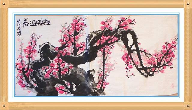 姚国秀先生不但精于翰墨的传承与创新,还有丹青写意的非凡神通。飞笔画鱼,一挥而就,龙之形,凤之韵,形韵寓古蝉,又是艺术美与装饰美的和谐统一!挂一幅神鱼图,这是国礼之品,赏心悦目,岂不快哉!他用极简的水墨画鱼题丰神,雅俗共赏,是笔墨当随时代,丹青装点生活的造诣,堪称鱼王,名副其实!先生画龙梅也是最显精气神,大墨重彩写铁骨,一枝神逸,绛彩丰艳,艳而不俗,这正是色不碍墨墨不碍色的气韵生动,人格化的塑造,是当代梅题的独特,以独特而立巅顶,最是令人心服口服!