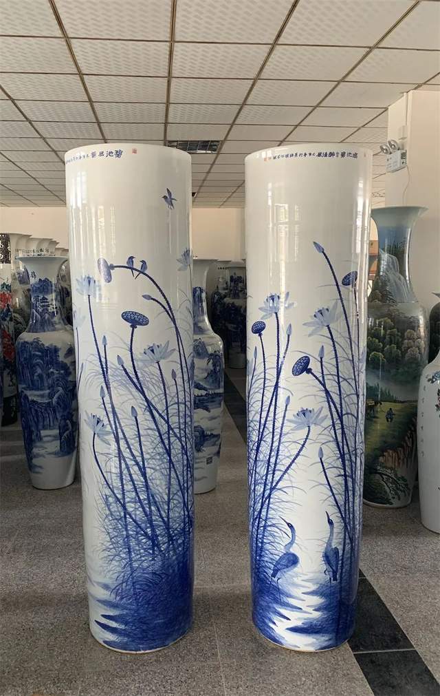他来景当日,我恰逢出差在外,他便由叶氏父子招待并去作坊绘瓷。我出差回来,即去他绘瓷现场看他。一见,便一则惊呼,二则惊喜。他身材魁伟,相貌堂堂,艺术家中鲜有此英俊魁伟者,使我一见面,心里有一种惊呼之感,一股英气扑面而来。而惊喜的是,他第一次来景,所绘青花,用笔、构图如此娴熟,尤如常绘瓷者,亦如景德镇陶瓷艺术家,实属不易。外地来景绘瓷艺术家,多半是以坯胎作宣纸,以釉料作墨水,以绘瓷之笔作绘画之笔,绘瓷如同绘画,活脱脱是国画的翻版,雅称其曰:"瓷上绘画"。
