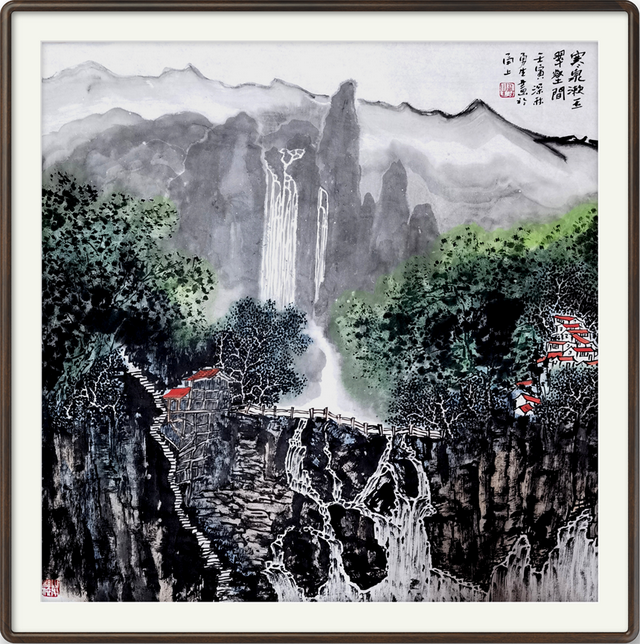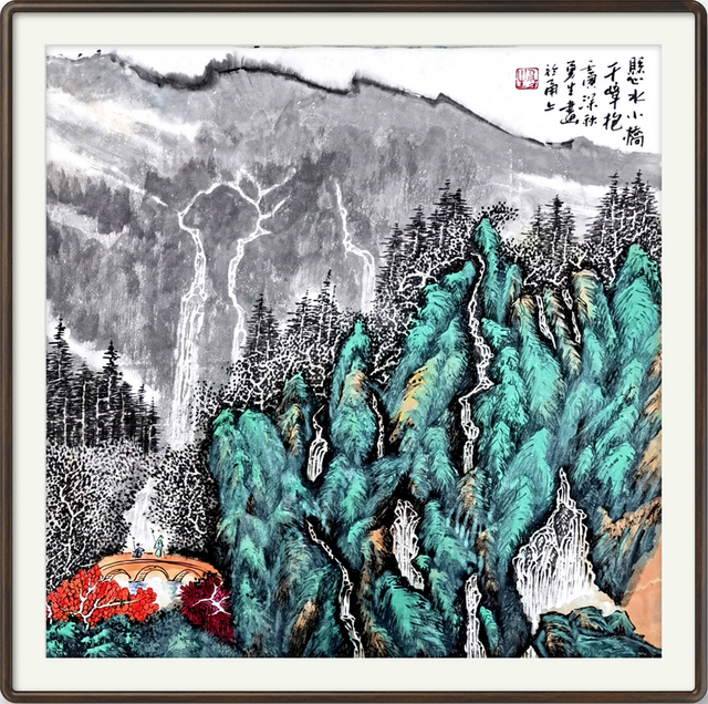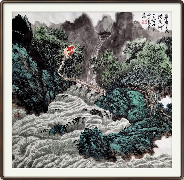 《悬水小桥千峰抱》70×70cm