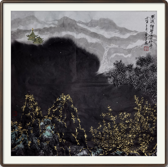 《风递钟声云外寺》70×70cm