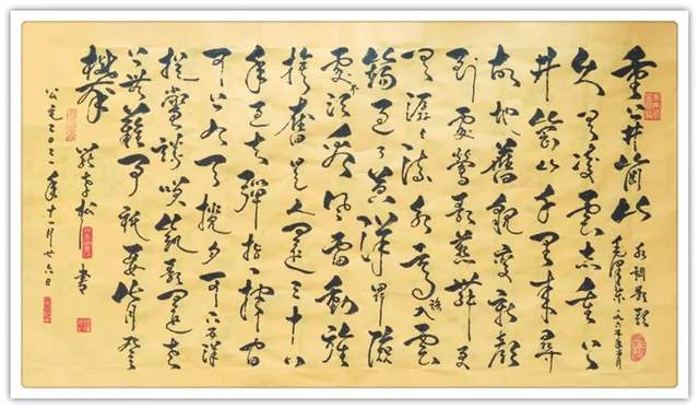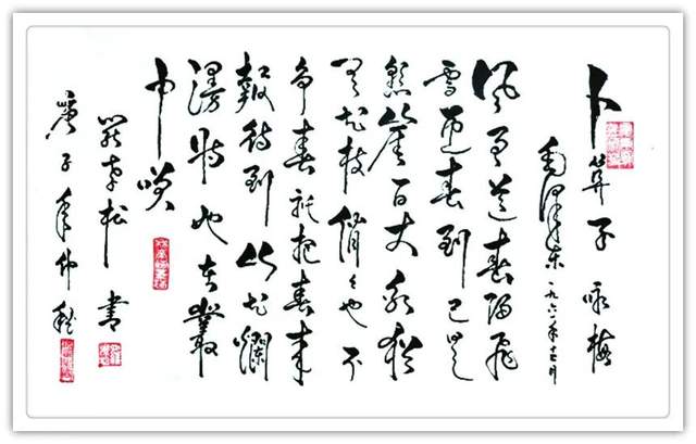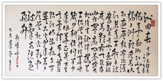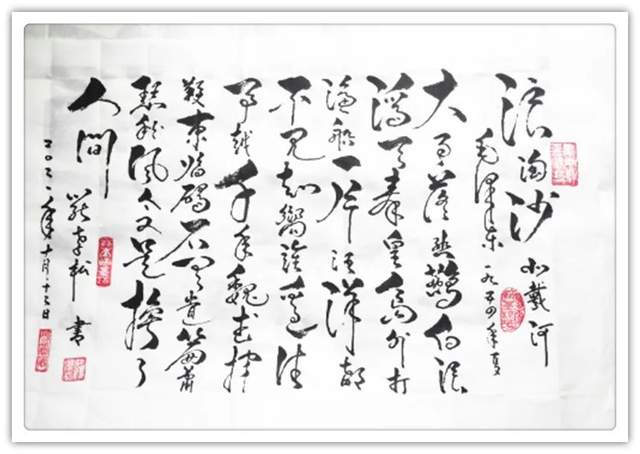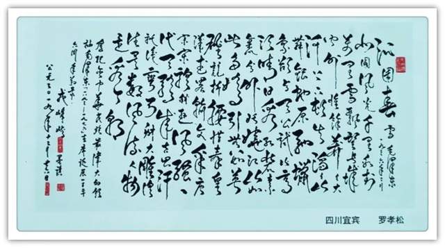有专家评说:“草书行云流水犹如沉鱼落雁,闭月羞花之娇美跃然纸上,蜿蜒起伏!急如飞沙走石气势铿锵。