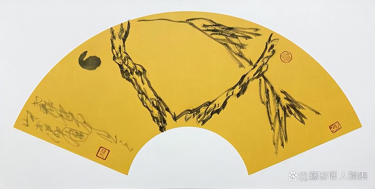 王福才中国画《扇面·松日图》