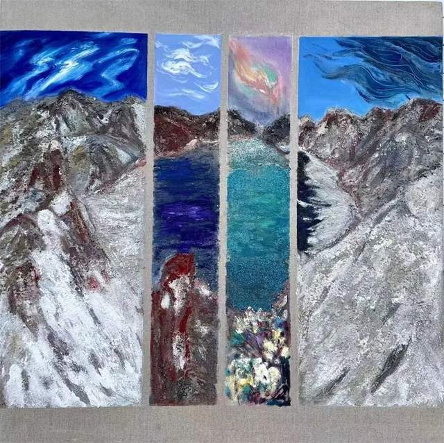 《长白山四季天池》120cmX120cm布面岩彩2022