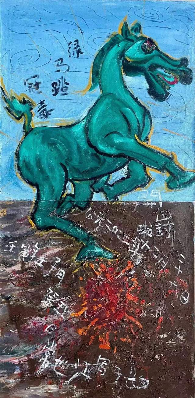 《绿马踏冠毒》120cmX60cm布面油画2022
