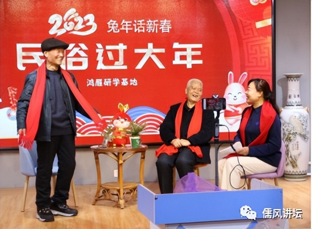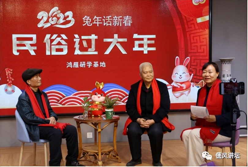 正月初二下午,淄博儒风讲坛举办的春节传统文化系列:2023兔年话新春“民俗过大年”在鸿雁研学基地线上直播