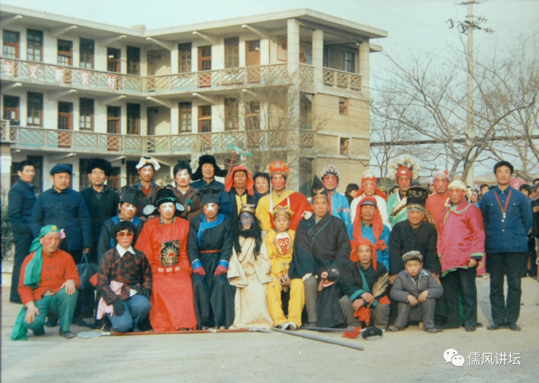 时任岭子镇党委书记崔德厚、镇长车呈忠、副书记张悦成等镇领导与游艺队全体工作人员合影留念。