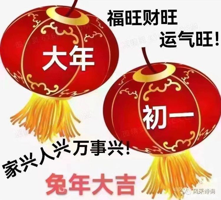 玉兔登台初一到,男女老少都欢笑。