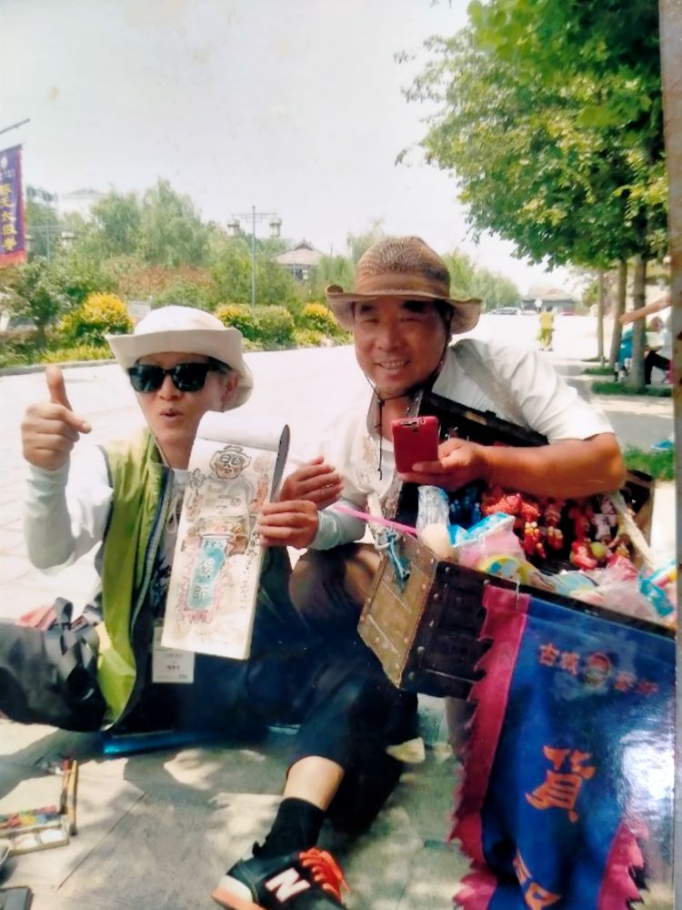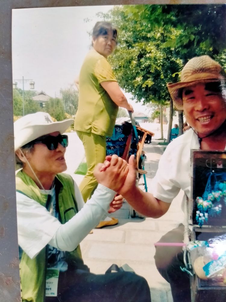 那位大爷找老伴儿,两眼紧盯着老太婆。