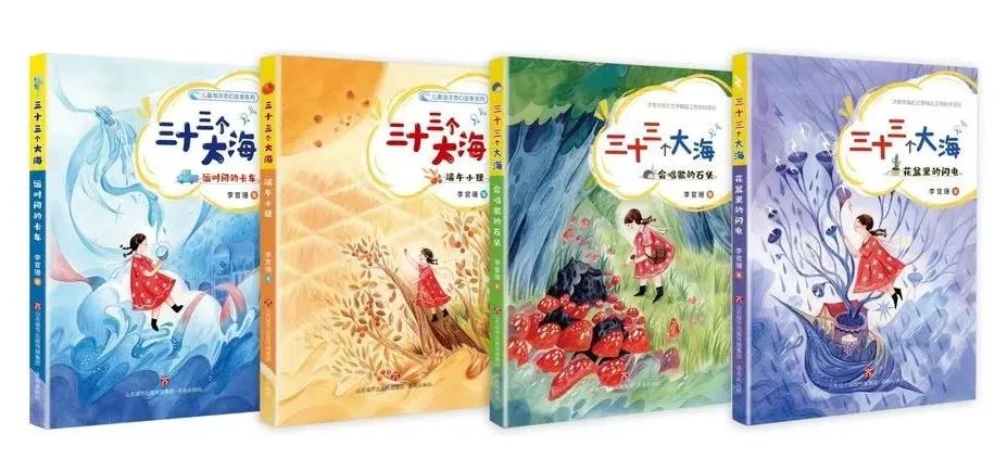 李官珊:《三十三个大海》这个总书名,是和济南出版社编辑郑敏老师一起想出来的。围绕着海洋、奇幻、儿童这样的主题,想过好多题目。“三十三个”并不是具体数字,而是指很多,很奇妙的意思。每个故事都是一个崭新的大海。新推出的两本在奇幻的想象世界里走得更远。《三十三个大海》系列有关于时间维度的奇妙历险《运时间的卡车》《被唤醒的时钟》,有关于空间维度的神奇旅行《天空中垂下大秋千》《鲜花长廊》,有关于爱和温暖的美妙体验《端午小狸》《会缠人的麻花》。