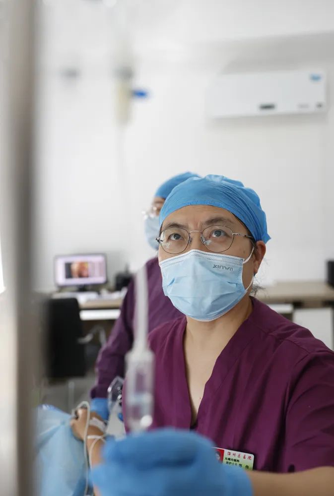 “麻醉”的角色。如今患者需求舒适化医疗,因此做无痛胃肠镜的患者越来越多。做无痛内镜前需要护士首先对患者进行全面的身体评估,并建立静脉通路,然后需要配合麻醉医生进行静脉推注麻药,让患者完全在无任何痛苦下做完胃肠镜筛查。