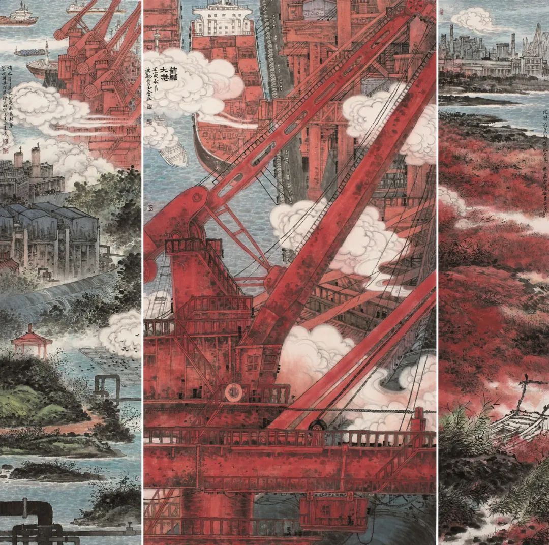 黄骅港建设(中国画)。孙鸿钧 杨贵玉