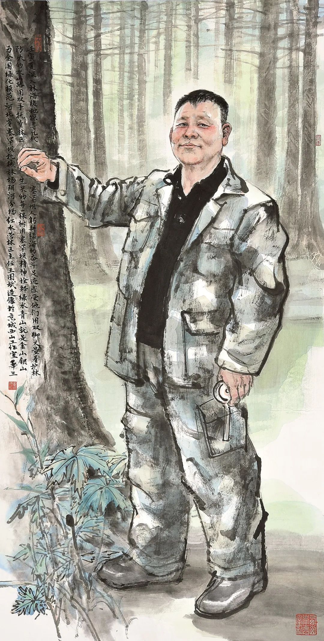 荣获“全国绿化奖章”的王国斌(中国画)。黄华三