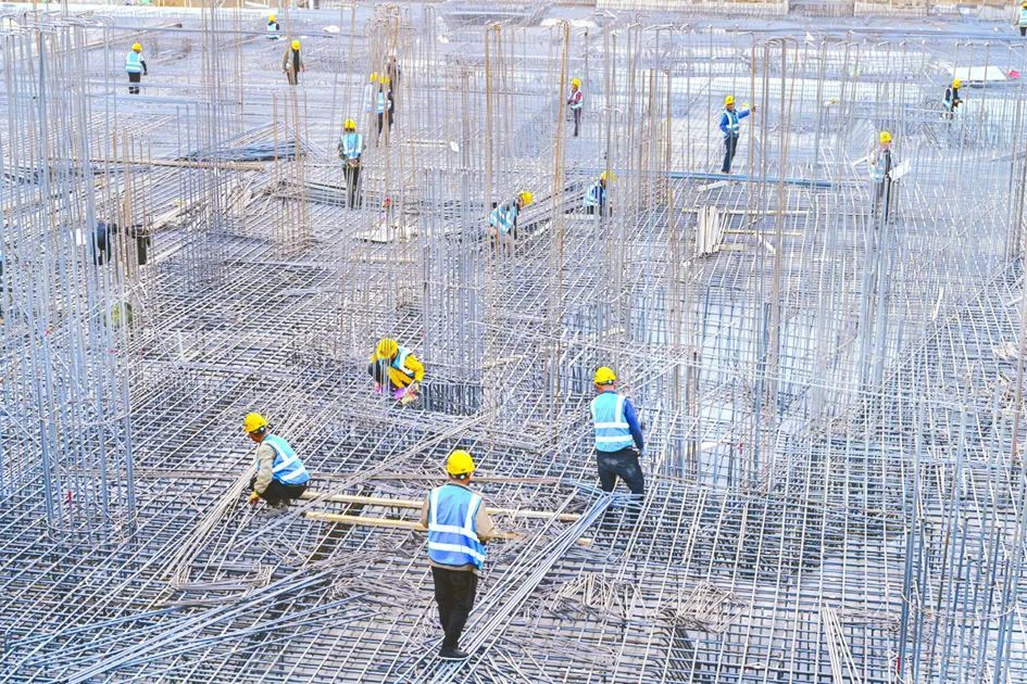 清晨,建设者们迎着朝阳,开始了一天的工作。李辉 摄
