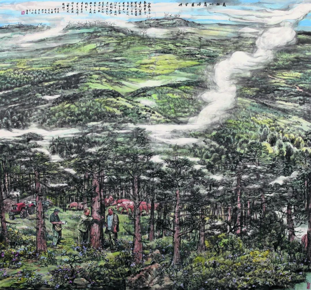 美丽的高岭塞罕坝(中国画)。祁海峰