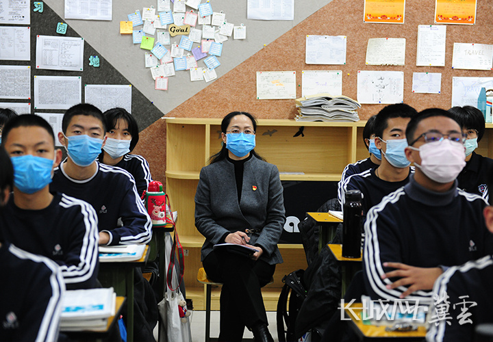 裴红霞在外语课堂上听课。石家庄外国语学校 供图