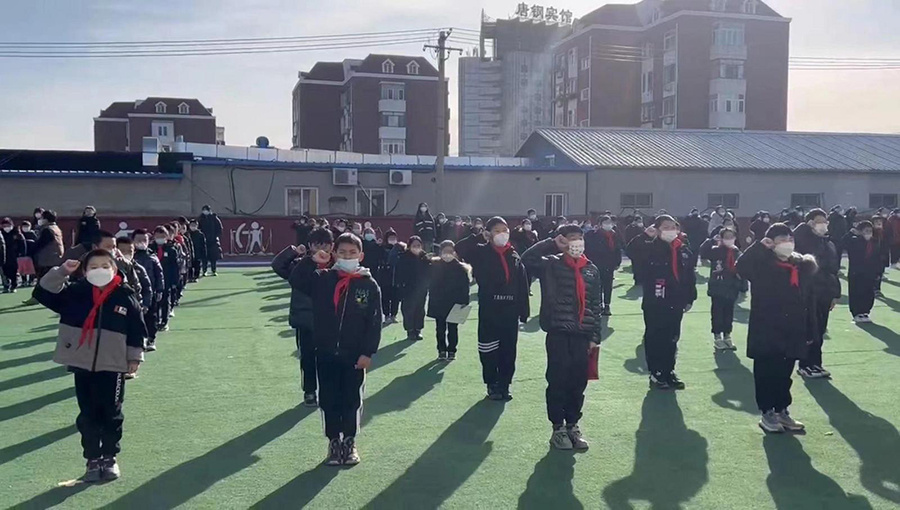 图为唐山市路北区乔屯楼小学学生在集体宣誓。