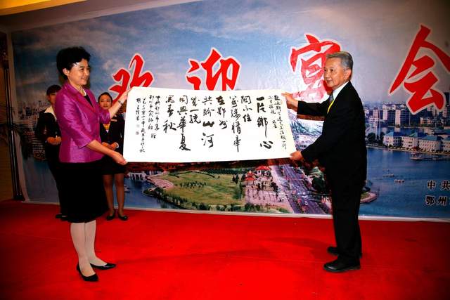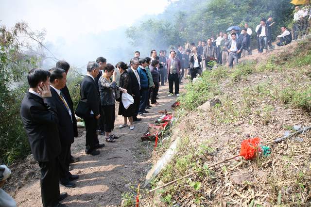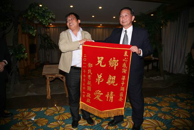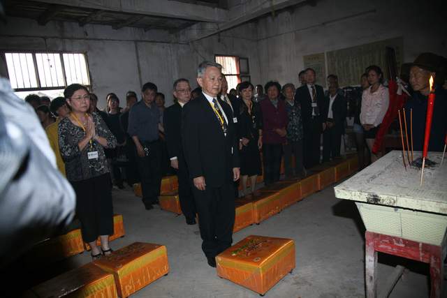 少小离家老大回,乡音未改鬓毛衰。2011年10月22日,鄂州市梁子湖区太和镇青峰山下著名人士邓定远先生(1908年生,中国台湾陆軍中将)后裔一行数人组成省亲团回乡祭祖省亲。受到当地群众热烈欢迎。随即举行欢迎大会,先生長子邓家琪发表了热情洋溢的讲话。省亲团到祖祠拜竭先祖,到祖坟山扫墓,参覌故居。鄂州市委、市政府举行欢迎宴会,时任市委书记梁惠玲向省亲团赠送书法作品,时任市长谢松保出席。第九张图是先生三子邓祖琳(中国台湾陆军二级上将)。(杨占先摄影)