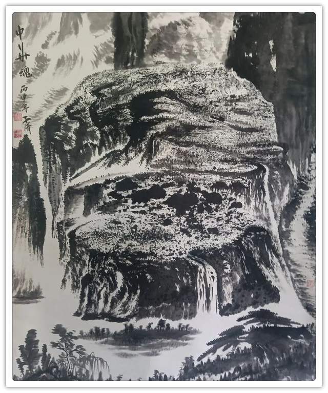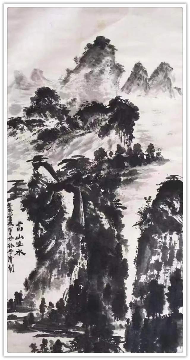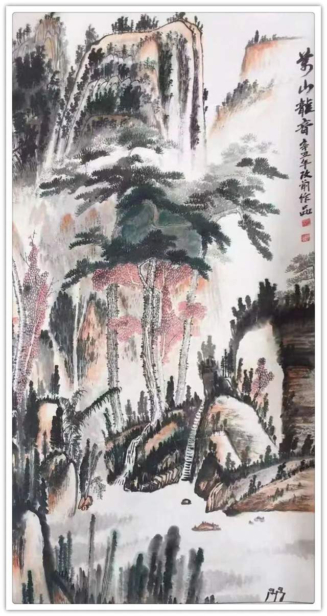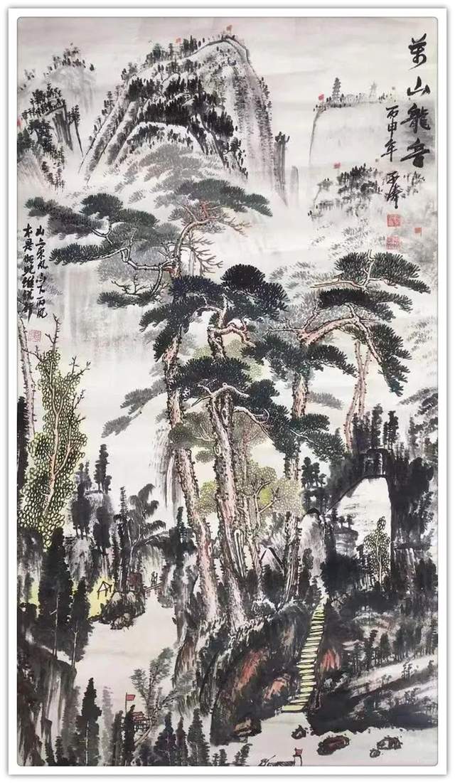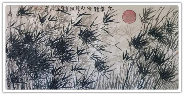 孙先生擅长山水,好画竹。其山水笔墨功夫娴熟老辣,以墨与色之浓淡、干湿、枯润恰到好处地书与出山光水影的季节、阴晴、云雨、雾霭的微妙变化,或万山红遍,层林尽染,或朝云叆叇,烟树历历,或乳峰交融,寒山石径。其构图横溢思绪,勾皴点染中笔法纵横变化,泼破间墨趣丰饶,在线性笔墨与团块性笔墨的结合中,通过繁简、疏密、虚实、主次的艺术处理,渲染出丰富层次,浓重浑厚与明洁清朗相得益彰,深邃茂密与朴秀多姿珠联璧合,静动萧慕与时有变化相辅相成,使读者沉浸于无限遐想之中,真可谓“竖画三寸,当千刃之高;横墨数尺,体百里之远"。孙先生的水墨写意竹兀傲清劲,体貌疏朗、遒劲圆润,疏影劲节,浓淡相映,虚实相照,艺术感染力极强,让人不禁想起板桥诗句“我有胸中十万竿,一时飞作淋漓墨”。