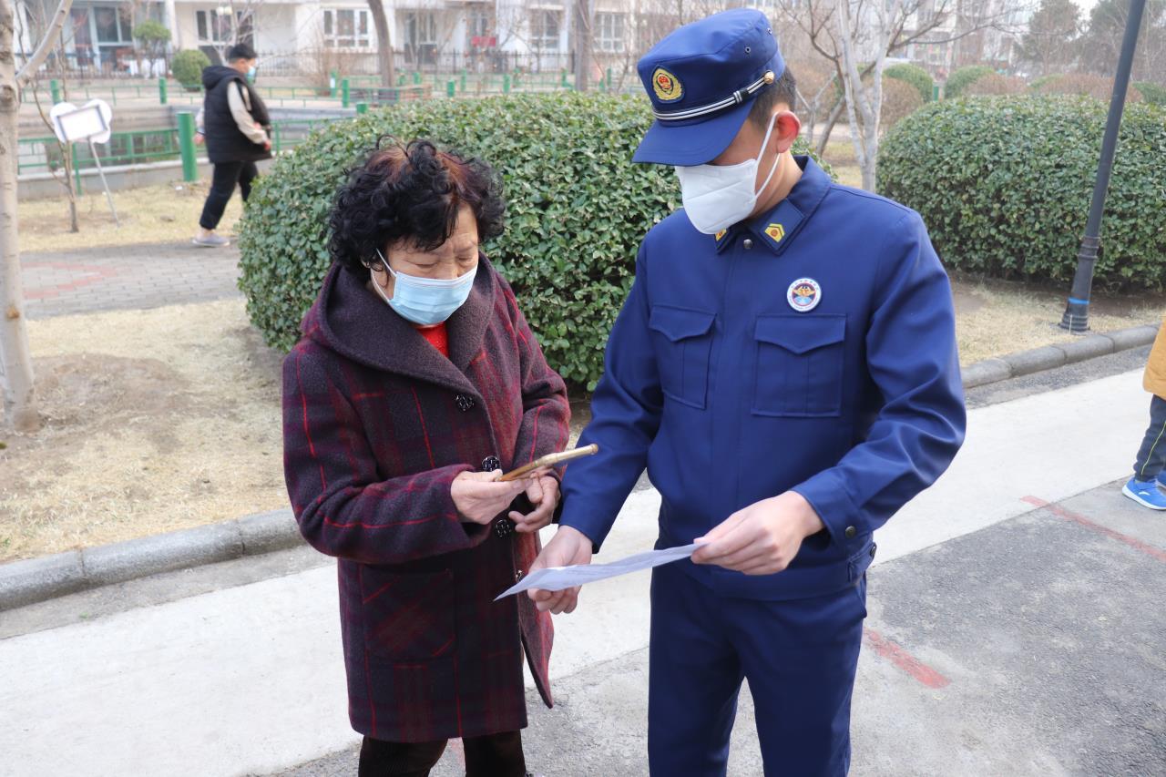 “蓝朋友”对小区居民讲解疫情期间消防知识。