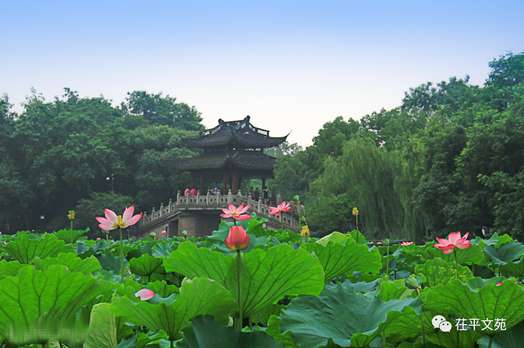 我走过曲院风荷,走过苏堤春晓,遥望三潭印月,走过花港观鱼,走过苏堤六桥,打动我的,是桥畔一丛丛临风而开的叫不上名字的粉色花朵。花朵之美,如美人染着淡淡红晕的脸颊,清丽娇媚,傍着苏东坡赐名的石桥,临着浩淼的湖水,才真正有了几分江南的味道。