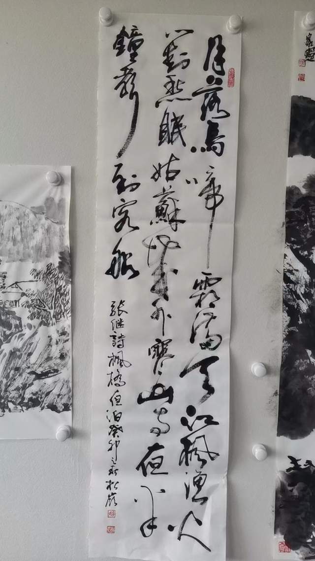 省公安厅老领导、著名书画家黄永生先生因有事不能赴会,特委托朋友送来精美的书法作品参加展示,花鸟画家、江城虾痴吉建国先生也托人带来了两幅国画,表达了热情支特和美好的祝福。