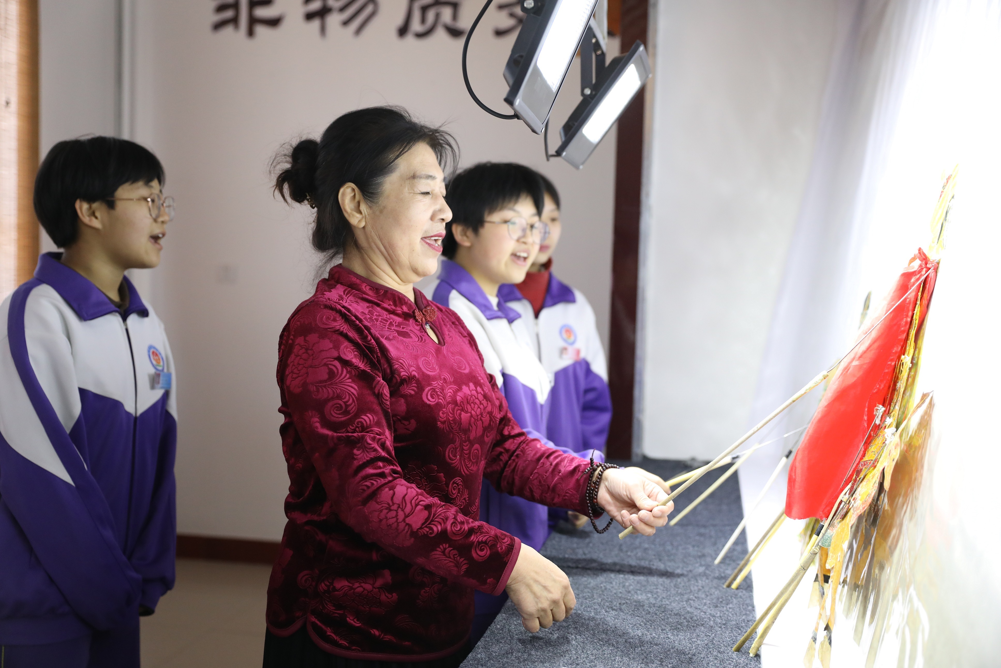 “四下观瞧景色美,无限风光在马盂山……”近日,在河北省平泉市第二中学,孩子们正在平泉皮影第三代传承人项艳华的带领下学习皮影戏表演,体验非遗文化的艺术魅力。