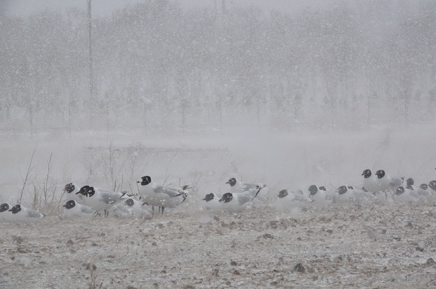 春雪中飞舞的遗鸥。
