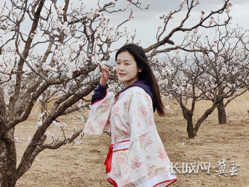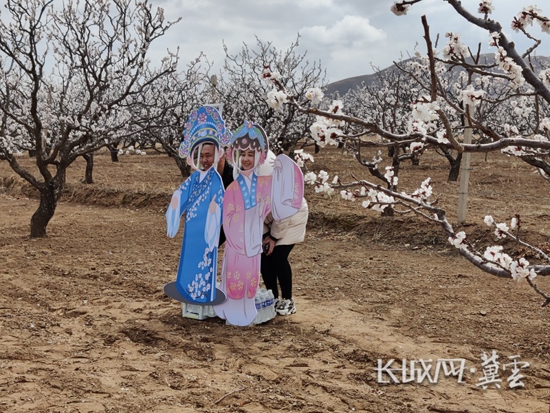 游客身着汉服在怀来县石片村杏花园里打卡拍照。长城网·冀云客户端记者 杨泽 摄